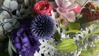 少し前になりますがカフェの入り口に飾る三日月形のリースが欲しい!とご依頼頂きました!ドライになるグリーンと花を使って、どんな扉かな?どんなお店かな?などなど妄想をしながらつくりました⭐︎
