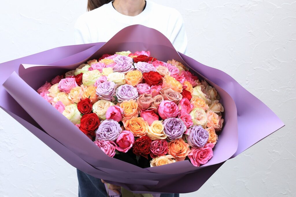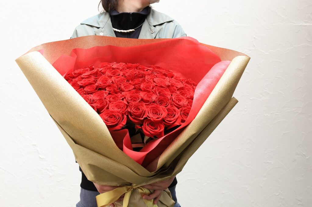 プロポーズ用の花束のご注文をいただきました!108本の赤バラ花束には「結婚してください」「永遠の愛」などプロポーズにピッタリの花言葉があります。