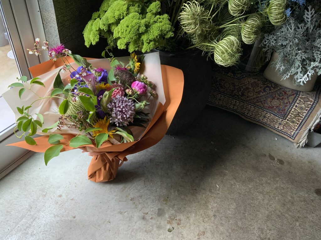 渋いオレンジ×ナチュラル色でふんわりラッピング