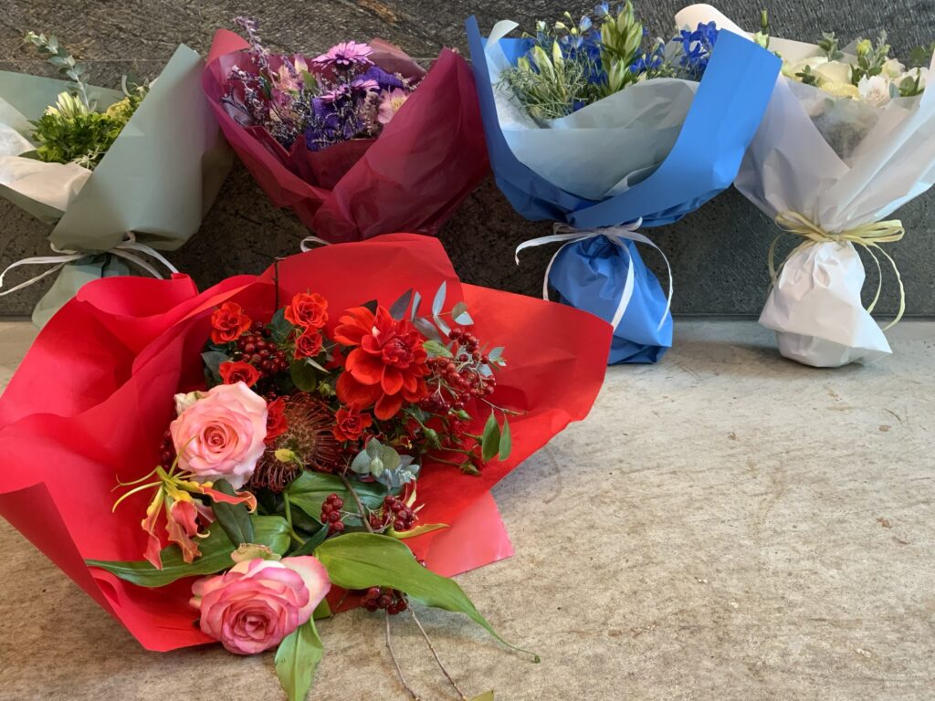 推しカラーの花束 お知らせ 2025.11.28 イメージカラーに合わせてオーダーいただいた花束のご紹介 レッド、グリーン、パープル、ブルー、ホワイトそれぞれ色別で 制作させていただきました! 名古屋 中区の花屋 アトリエモカラ それぞれの色でお任せでご依頼いただいた花束は お花の色に合わせてラッピングの色も統一してお作り可能です イメージの色や推しカラーに合わせた花束はとても喜んでもらえたとご好評いただいております 大切な方への贈りものにぜひ^^ スタッフつぼ