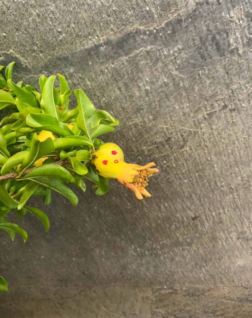 ザクロの花は6月頃に多くみられ肉厚の額の間から花びらが飛び出すように咲き、散った後の額がタコさんウインナーに似ていて可愛らしいです♡